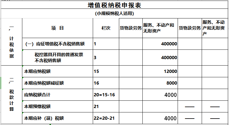 對(duì)應(yīng)減征的增值稅應(yīng)納稅額按銷售額的2%計(jì)算填寫在《增值稅納稅申報(bào)表(小規(guī)模納稅人適用)》“本期應(yīng)納稅額減征額”及《增值稅減免稅申報(bào)明細(xì)表》減稅項(xiàng)目相應(yīng)欄次。