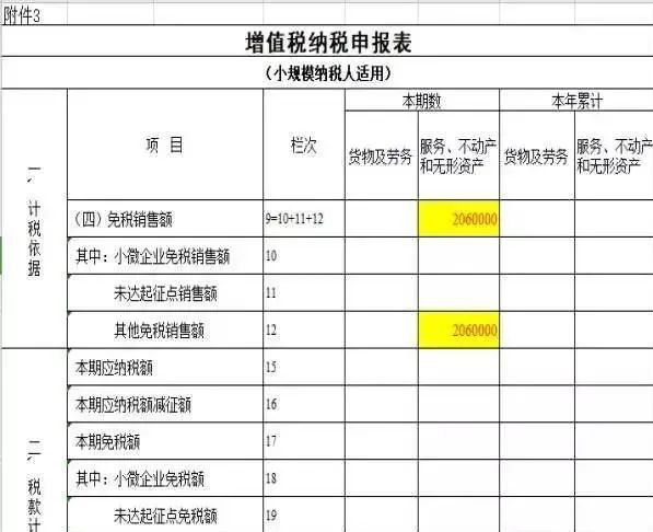 提醒:餐飲行業(yè)填報(bào)的時(shí)候選擇《增值稅納稅申報(bào)表(小規(guī)模納稅人適用)》第12欄“其他免稅銷售額”相關(guān)列次,填報(bào)免稅銷售額,并在《增值稅減免稅申報(bào)明細(xì)表》中選擇正確的免稅代碼,填寫相關(guān)列次。